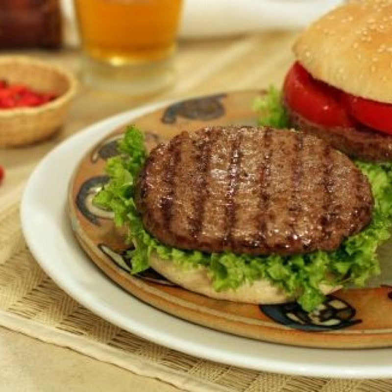 Caja con 24 unidades. Hamburguesa 100% carne sin aditivos ni conservante, libre de sellos, baja en sodio. La verdadera hamburguesa.