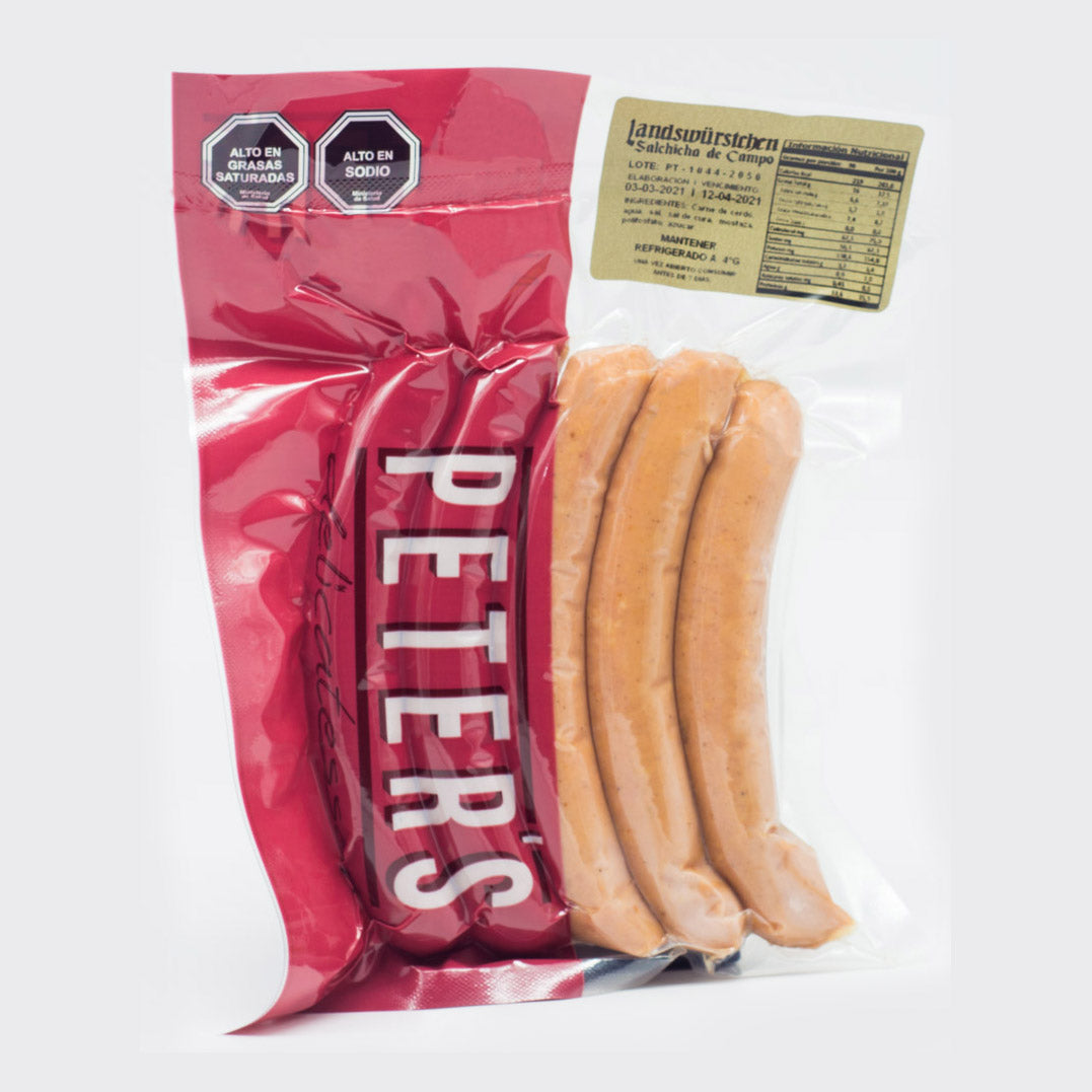A diferencia de las salchichas o vienesas que, por lo general se pueden adquirir en el mercado, nuestras Salchichas Landswürstchen (o Salchicha de Campo) es elaborada solamente con carne de cerdo seleccionada y condimentos naturales, sin grasa añadida ni excesos de agua. No contienen preservantes, colorantes, ni extensores. Un producto de primera calidad, sabroso y sano para toda la familia, en especial los más pequeños. Producto pre cocido.